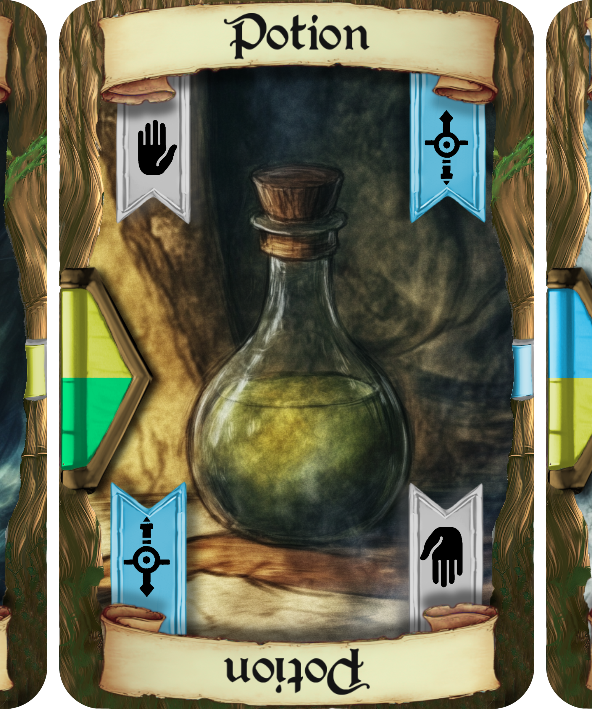 Discover 6 Story Card types (Character, Trait, Item, Action, Event, Place), each marked by an icon and a top right-side colour banner. Also, watch out for Special cards, identified by a top left-side banner.